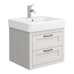 Chatsworth Traditional Grey Semi-Recessed Vanity – 600mm Wide With Matt Black Handles