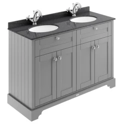 Old London 1200mm Cabinet & Double Bowl Black Marble Top – Storm Grey
