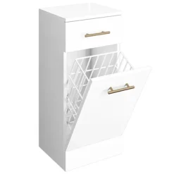 Venice 350x300mm Gloss White Laundry Basket With Brushed Brass Handles
