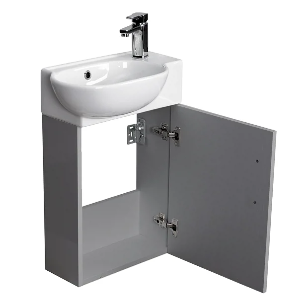 Add a modern touch to your bathroom with the eye-catching Valencia Perla range. The space-saving Valencia Perla gloss grey compact wall hung basin unit comes with a high quality offset curved ceramic basin with a right hand positioned tap hole. The Valencia Perla provides you with a handy space-saving solution for your cloakroom or en-suite, helping to keep your bathroom clutter free.