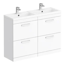 Brooklyn 1205mm Gloss White Double Basin 4 Drawer Vanity Unit