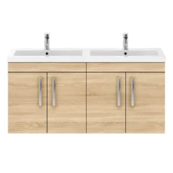 Brooklyn 1205mm Natural Oak Wall Hung 4 Door Double Basin Vanity Unit