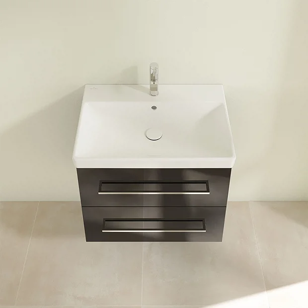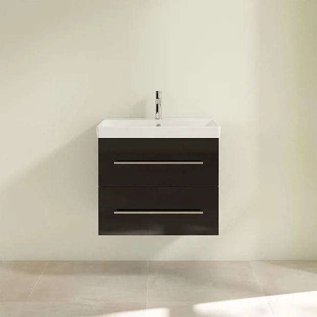 Villeroy and Boch Avento Crystal Black 650mm Wall Hung 2-Drawer Vanity Unit