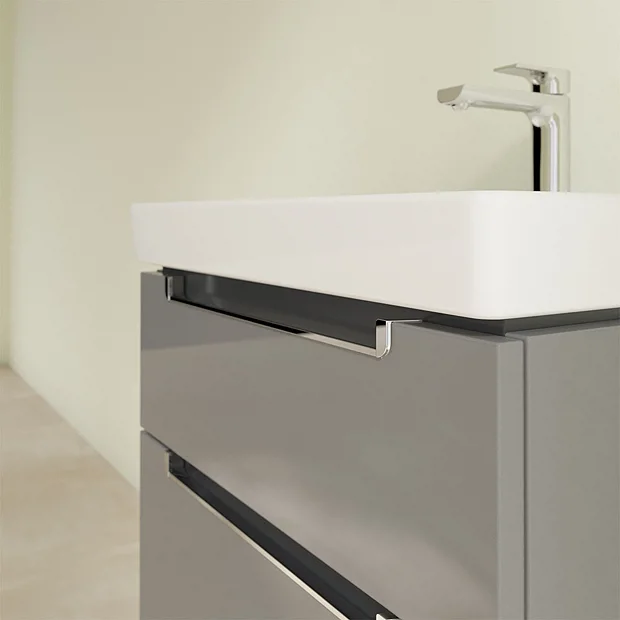 Subway 2.0 bathroom furniture by Villeroy & Boch brings diversity to the cosy bathroom. This Glossy Grey Wall Hung 2-Drawer Vanity Unit has generous storage space thanks to clever interior arrangement and its shock-absorbing, soft-closing drawers that slows down the drawer and automatically closes it, slowly and silently. With a range of colours, the modern design of the bathroom furniture by Subway 2.0 gives every bathroom a fresh and natural look.