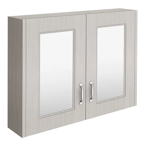 York Traditional Stone Grey Woodgrain 2 Door Mirror Cabinet (800 x 162mm)